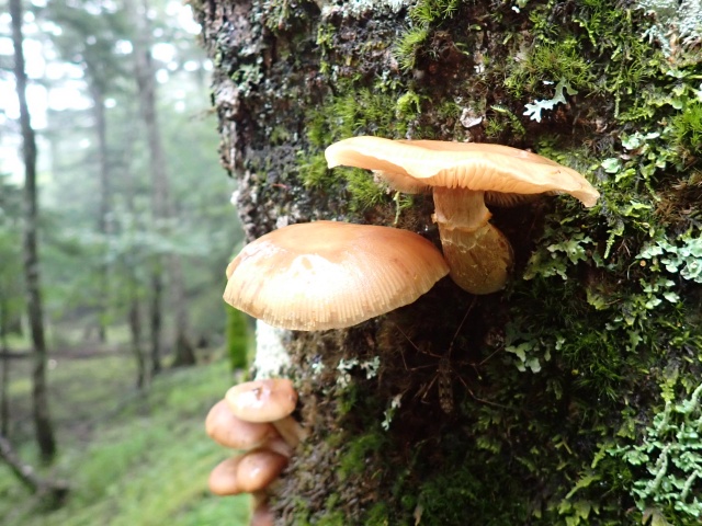 枯れ木に出ていたナラタケ。傘の鱗片が目立たないやつだったので同定で悩みました。これもヌメヌメなし。